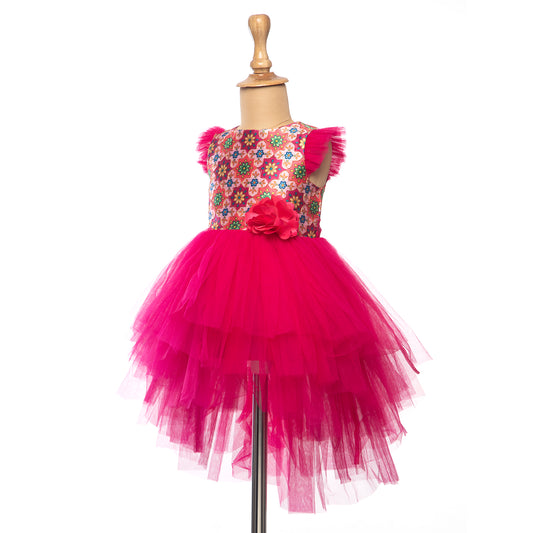 Fuchsia Pink Dress(Print) - Birthday Party , Flower Girl , LOL Doll Party